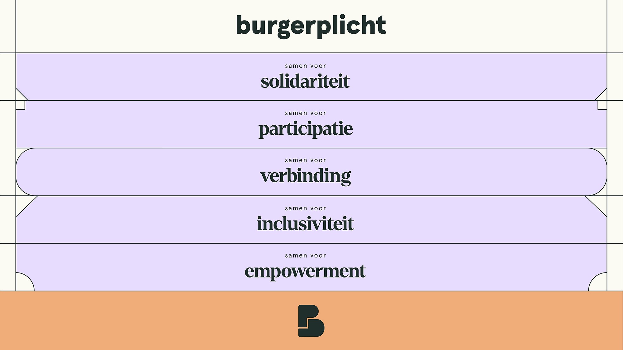 Burgerplicht bouwt aan een inclusief Gent waarin iedereen meetelt. Met projecten rond onderwijs, cultuur, gezondheid en armoedebestrijding zet het zich in voor een inclusieve stad waarin iedereen volwaardig deel kan nemen. Een onderneming waar we met veel bewondering naar kijken en die we maar al te graag hielpen met een nieuwe huisstijl.