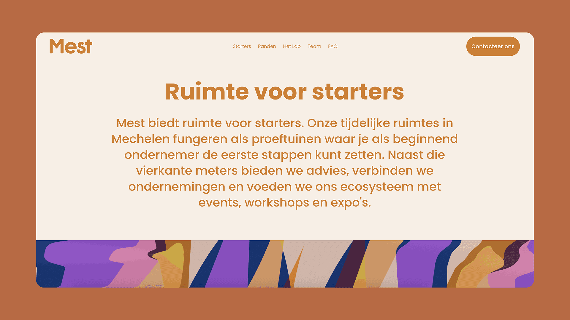 Mest biedt ruimte voor starters. Onze tijdelijke ruimtes in Mechelen fungeren als proeftuinen waar je als beginnend ondernemer de eerste stappen kunt zetten. Naast die vierkante meters bieden we advies, verbinden we ondernemingen en voeden we ons ecosysteem met events, workshops en expo's.